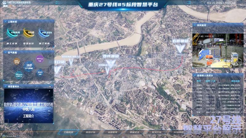 BIM(Building Information Modeling,建筑信息模型)是以建筑工程項目的各項相關信息數據作為模型的基礎,進行建筑模型的建立,具有可視化、協調性、模擬性、優化性和可出圖性五大特點,在提高生產效率、節約成本和縮短工期方面發揮重要作用。重慶軌道交通27號線服務城市中心區、西永及茶園組團中心,支撐沿線沙坪壩、大坪、南坪、茶園、大學城等商圈及人口聚集地區發展,串聯沙坪壩站、重慶站、重慶東站等重要門戶樞紐,實現城市內外交通快速轉換,提升軌道交通效率。由集團公司承建的重慶軌道交通27號線土建工程05標段總長6666.6米,包含1站2區間。其中,磁沙區間為礦山法施工,沙坪壩站為雙層初支拱蓋法施工,沙石區間采用復合式TBM施工,項目施工均在都市核心區范圍,安全風險高,施工難度極大。自開工以來,項目部積極推動BIM技術在實際施工中的應用,小到臨建布設,大到方案變更,以BIM技術為施工現場解決難題,提高施工質量和經濟效益,推動建筑行業的數字化智慧轉型。