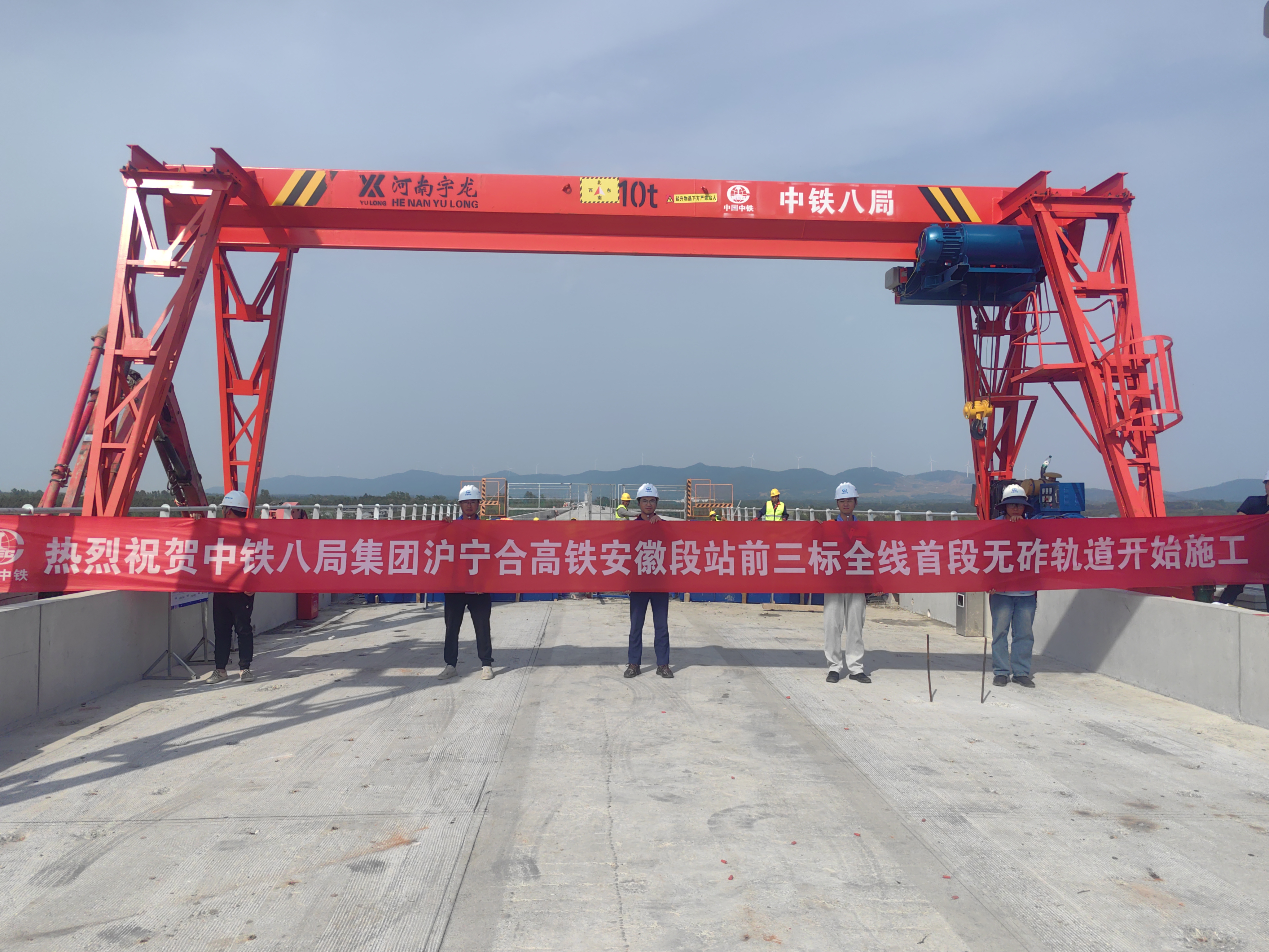 據了解,滬寧合高鐵是滬渝蓉高鐵的東段線路、國家“八縱八橫”高速鐵路網沿江通道的重要組成部分,建成后將承擔沿江通道主要路網客流、沿海及京滬通道部分直通上海客流的運輸。集團公司承建的滬寧合高鐵安徽段站前三標段線路全長25.69公里,本次施工的橋梁地段CRTSⅢ型板式無砟軌道,由鋼軌、彈性扣件、軌道板、自密實混凝土、隔離層和底座板等部分組成。