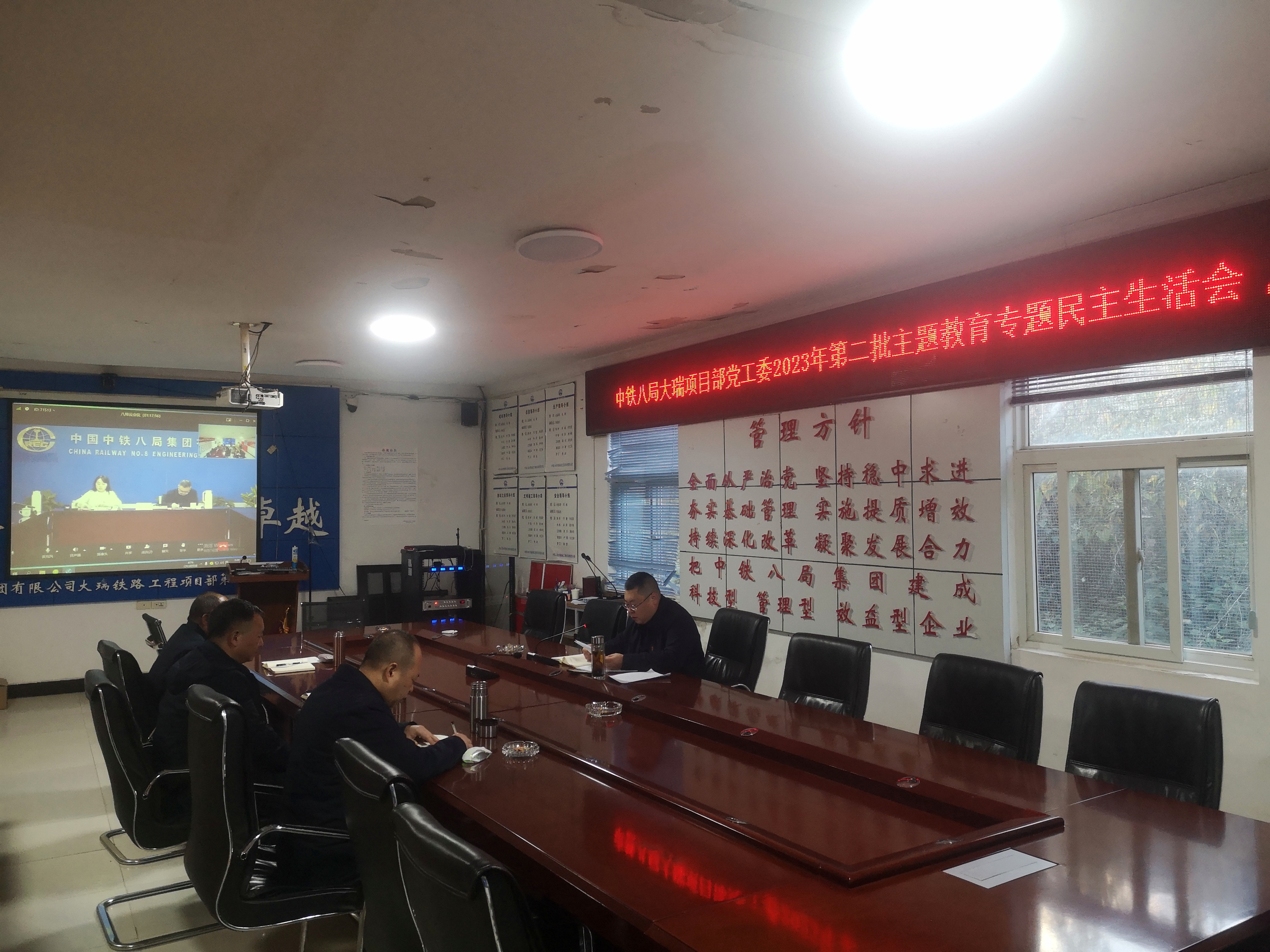 1月18日,集團公司大瑞鐵路項目經理部黨工委在滇召開2023年度黨員領導干部第二批主題教育專題民主生活會,集團公司黨委第三聯絡組副組長、人力資源部(黨委干部部)副部長胡方平視頻連線參會指導。